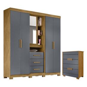 Guarda Roupa Solteiro Eldorado e Cômoda Dhara Freijó Cinza - Moval