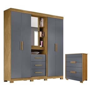 Guarda Roupa Solteiro Eldorado e Cômoda Dhara Freijó Cinza - Moval