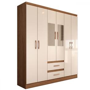 Guarda-Roupa Solteiro Elise com Espelho 6 Portas 2 Gavetas Off White/Nogueira - Panorama Móveis - Bege