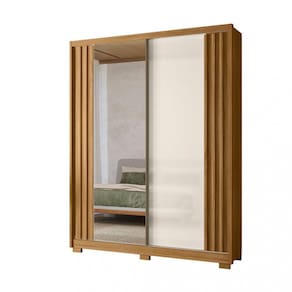 Características: Estrutura em MDP 2 Portas de correr 3 Gavetas Corrediças telescópicas Portas com detalhes ripados Cabideiros em alumínio, Pés em pvc Espelho