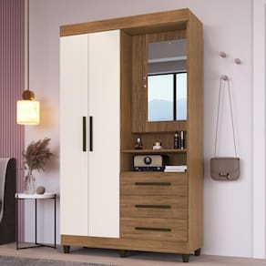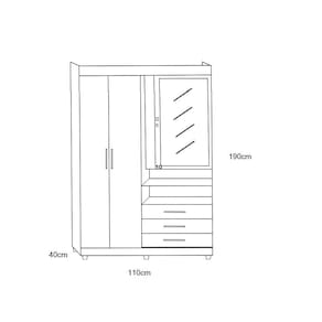Guarda Roupa Solteiro Espelho 3 Portas 3 Gavetas Europa Faimec - Off White
