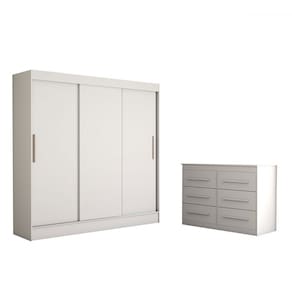 O(a) Guarda-Roupa Solteiro Europa 3 Portas 2 Gavetas e Cômoda 6 Gavetas Branco - Loja é produzido em MDF e MDP na escala de brilho Semi-Brilho, e possui um grau de dificuldade de montagem: Médio.
