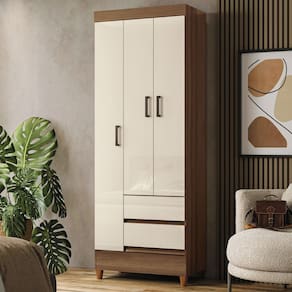 O(a) Guarda-Roupa Solteiro Fit 3 Portas 2 Gavetas Jequitiba/Off White - Santos Andirá é produzido em MDP e HDF na escala de brilho Brilhante, e possui um grau de dificuldade de montagem: Médio.