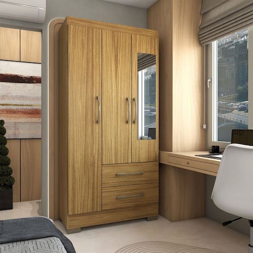 O(a) Guarda-Roupa Solteiro Florença 3 Portas 2 Gavetas com Espelho Marrocos - Loja é produzido em MDP na escala de brilho Alto Brilho, e possui um grau de dificuldade de montagem: Médio.