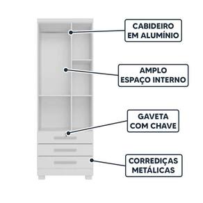 Amplo Espaço Interno: Conta com 2 portas de bater e 1 cabideiro em alumínio de 27,8 cm, perfeito para pendurar roupas sem amassar.