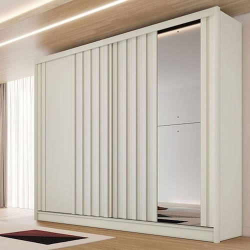 O(a) Guarda-Roupa Solteiro Galati 2 Portas 4 Gavetas com Espelho Ripado 100% Mdf Off White 11874 - Mademarques é produzido em 100% MDF na escala de brilho Semi-Brilho, e possui um grau de dificuldade de montagem: Médio.