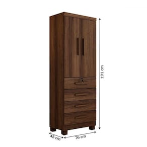 O(a) Guarda-Roupa Solteiro Gales 2 Portas 4 Gavetas com Chave Imbuia - Loja é produzido em MDP na escala de brilho Fosco, e possui um grau de dificuldade de montagem: Médio.