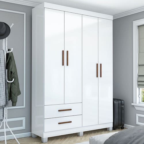 O(a) Guarda-Roupa Solteiro Genova 4 Portas 2 Gavetas 22112 Branco - Carioca Móveis é produzido em MDP na escala de brilho Fosco e Semi-Brilho, e possui um grau de dificuldade de montagem: Médio.