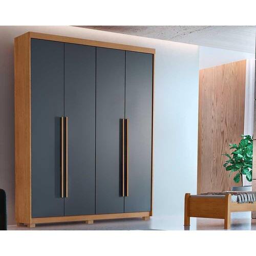 Guarda Roupa Solteiro Hawaii 4 Portas e 2 Gavetas c/ Pés Naturale/Grafite - Rufato - Blush