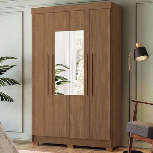 O(a) Guarda-Roupa Solteiro Sarandi 4 Portas 2 Gavetas Jatoba - Santos Andirá é produzido em MDF, MDP e HDF na escala de brilho Semi-Fosco, e possui um grau de dificuldade de montagem: Médio.