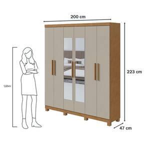 Guarda Roupa Solteiro Jazz 6 Portas Amêndoa Clean Off White com Espelho e Pés ? Lopas
