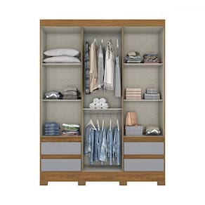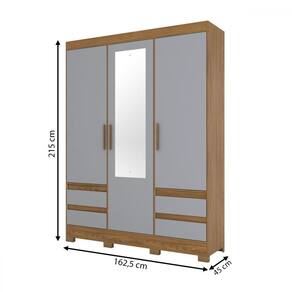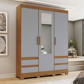 O(a) Guarda-Roupa Solteiro Lema 3 Portas 4 Gavetas com Espelho Nature/Cinza - Henn é produzido em MDP na escala de brilho Brilho e Fosco, e possui um grau de dificuldade de montagem: Médio.