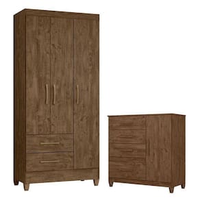 Guarda Roupa Solteiro Lima e Cômoda Vênus com Pés Castanho Wood Moval