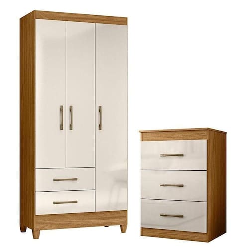 Guarda Roupa Solteiro Lima e Cômoda Vitória Freijó Off White Moval