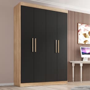 4 portas de dobradiças 5 prateleiras 2 gavetas com Corrediças Metálicas Puxadores em MDF Fabricado em MDP Acabamento Touch Alto-Relevo ou Alto Brilho UV (nas cores Branco e Off-white) e Semibrilho parte interna 2 cabideiros de madeira Fácil montagem
