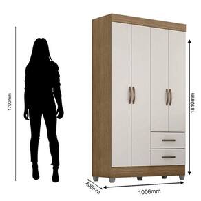 Guarda Roupa Solteiro Lite 4 Portas Nature Off White - Móveis Leão