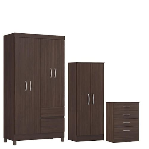 Guarda Roupa Solteiro Lótus com Multiuso Viena com Cômoda Astral Café - Demóbile