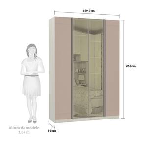 Guarda-Roupa Solteiro Luciane 4 Portas 3 Gavetas Prime Plus Alumínio com Vidro Reflecta - Blush