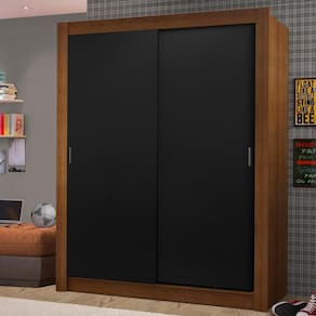 Itens inclusos: - Um (1) cabideiro metálico grande - Duas (2) prateleiras e três (3) nichos - Duas (2) gavetas com corrediças metálicas - Duas (2) portas de correr com puxadores em PVC