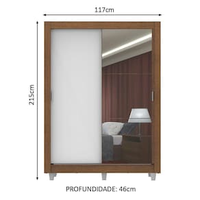 Medidas totais do guarda-roupa: 215 cm de altura x 117 cm de largura x 46 cm de profundidade.