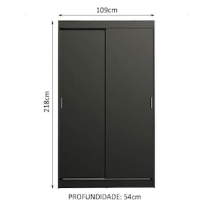 Medidas totais do guarda-roupa: 218 cm de altura x 109 cm de largura x 54 cm de profundidade.