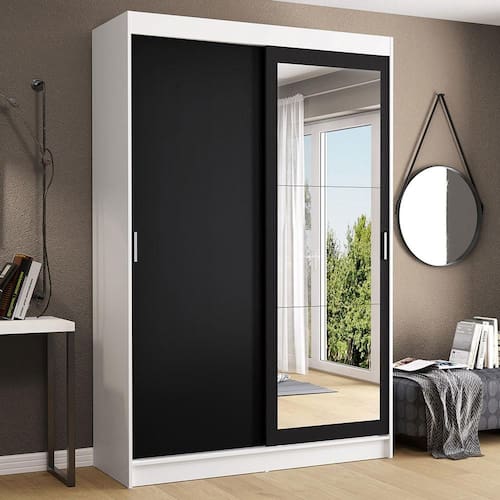 Os materiais utilizados são de alta qualidade, com duas portas de correr com deslizamento suave e puxadores em alumínio, dobradiças metálicas e trilho superior e inferior em alumínio. Além disso, uma das portas conta com espelhos que são muito úteis no dia a dia.