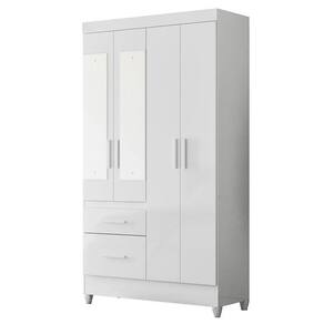 100% MDPGuarda Roupa Solteiro Madri com Espelho e Armário Multiuso New Íris Branco Brilho - Moval