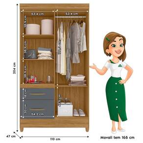 Guarda Roupa Solteiro Madri com espelho e Cômoda MS913 Freijó Cinza – Moval