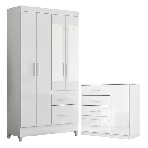 Guarda Roupa Solteiro Madri com espelho e Cômoda Vênus Branco Flex – Moval