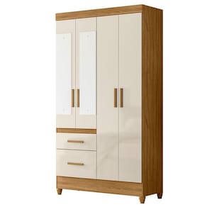 Guarda Roupa Solteiro Madri com espelho e Cômoda Vênus Freijó Off White – Moval