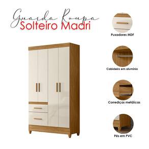 Guarda Roupa Solteiro Madri e Cômoda Lisboa Freijó Off White – Moval