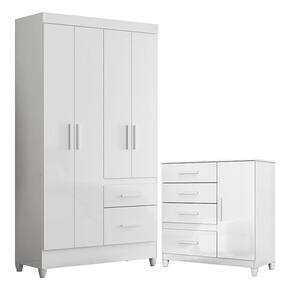 Guarda Roupa Solteiro Madri e Cômoda Vênus com pés Branco Flex – Moval