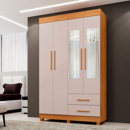 O(a) Guarda-Roupa Solteiro Malta 4 Portas 2 Gavetas com Espelho Cinamomo/Off White - Pnr Móveis é produzido em MDP na escala de brilho Fosco, e possui um grau de dificuldade de montagem: Médio.