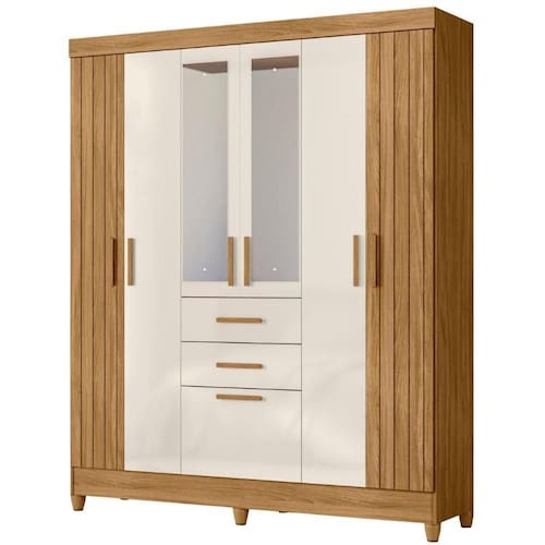 Guarda Roupa Solteiro Malta Com Espelho 7 Portas Moval