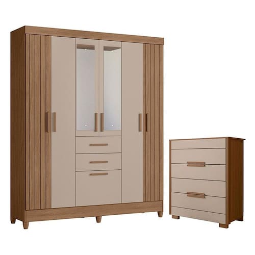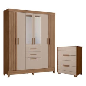 Guarda Roupa Solteiro Malta com Espelho e Cômoda Dhara Carvalho Fendi – Moval