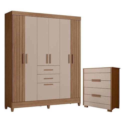 Organize seu quarto com elegância e o melhor custo benefício do mercado. Apresentamos o Guarda Roupa Solteiro Malta e Cômoda Dhara fabricados pela Moval. Guarda Roupa possui 07 portas sendo as laterais com detalhes frisados, 02 gavetas com corrediças metálicas, puxadores em MDF, cabideiro e calceiros em alumínio para melhor organização interna e pés em PVC. A cômoda possui 04 gavetas, com corrediças telescópicas, moldura lateral de 25mm e tampo de 15mm, pés em PVC e puxadores em MDF. Fabricado com materiais de alta qualidade que garante resistência e durabilidade ao produto. Confira mais detalhes e aproveite!