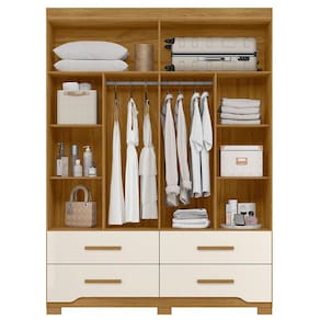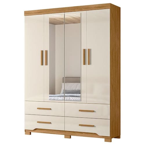 Guarda Roupa Solteiro Miami 4 Portas Freijó Off White com Espelho - Moval