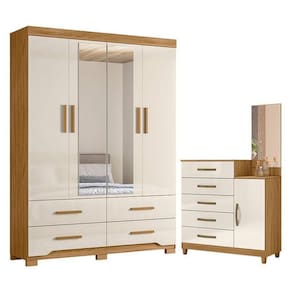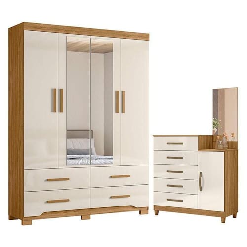 Organize seu quarto com elegância e o melhor custo benefício do mercado. Apresentamos o Guarda Roupa Solteiro Miami e Cômoda Lisboa fabricados pela Moval. Guarda Roupa com 04 portas e 04 gavetas com corrediças telescópicas, espelhos inclusos, puxadores em MDF, cabideiro em alumínio para melhor organização interna, detalhes usinados nas gavetas, espaço ideal para roupas longas e pés em PVC. A cômoda possui 05 gavetas com corrediças metálicas, 01 porta, painel em espelho, puxadores em MDF e pés em PVC. Fabricado com materiais de alta qualidade que garante resistência e durabilidade ao produto. Confira mais detalhes e aproveite!