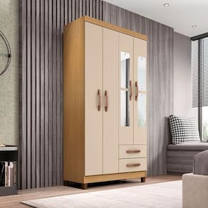 Guarda Roupa Solteiro Modena com Espelho 4 Portas Carvalho Americano Off White - Incorplac