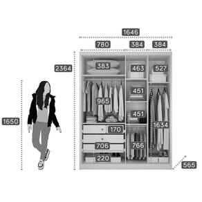 Caracteristicas: Acabamento: Pintura UV Material principal: MDF Numero de portas: 4 Material do Cabideiros: Aluminio Possui Espelho: Nao Quantidade de Gavetas: 3 Tipo de gavetas: Internas Gavetas com Chave: Nao Corredicas das Gavetas: Telescopica Peso maximo por gaveta: 5 kg Numero de Prateleiras: 5 Peso maximo de Prateleiras: 5 kg Numero de Cabideiros: 3 Possui Pes: Nao Peso do produto: 152 kg Necessidade de Montagem: Sim