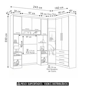 Dimensão dos Produtos Largura: 243 x 160 cm. Altura: 230 cm. Profundidade: 47 cm. Peso: 250 Kg.