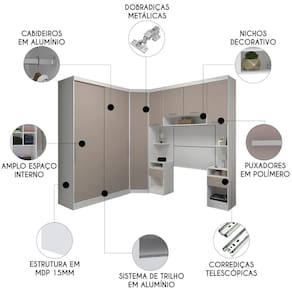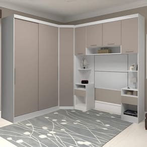 O Guarda Roupa de Canto ajuda a otimizar o ambiente com suas prateleiras internas, porta e puxador em polímero, perfeito pra guardar o que você precisa com fácil acesso.