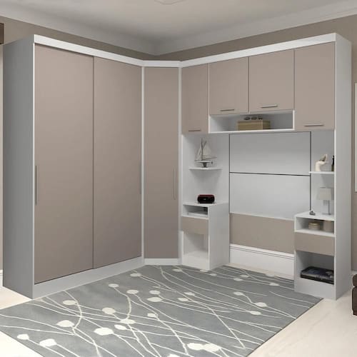 Esse Quarto Solteiro Modulado é uma escolha prática e cheia de estilo pro seu Quarto de Solteiro. Os módulos foram pensados pra aproveitar bem o espaço, mantendo tudo sempre em ordem.