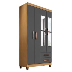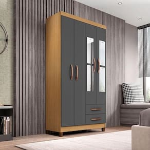 Guarda Roupa Solteiro Mogi com Espelho 4 Portas Carvalho Americano Grafite - Incorplac