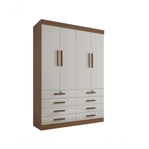 Guarda Roupa Solteiro Mônaco 4 Portas 8 Gavetas Com Pés D' Doro Castanho/off White Por detrás de todo quarto organizado há um móvel resistente e de qualidade. Com este magnífico Guarda Roupa Mônaco o espaço ganhará contornos mais sofisticados e ficará muito mais organizado. Tenha roupas e acessórios sempre ao seu alcance. Aproveite! Obs. Objetos de decoração não inclusos