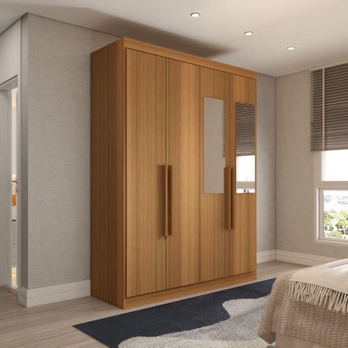 O(a) Guarda-Roupa Solteiro Mykonos 4 Portas 2 Gavetas com Espelho Cinamomo - Loja é produzido em MDP na escala de brilho Semi-Brilho, e possui um grau de dificuldade de montagem: Médio.