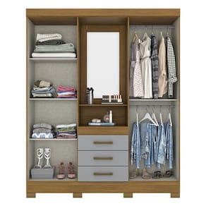 Guarda Roupa Solteiro Nápole Nature Cinza – Briz Móveis