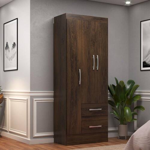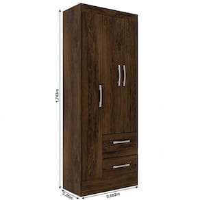 - Tonalidade: Marron - Produto Infatil: Não - Comodo indicado: Quarto - Material do Puxador: Plástico - Observação: Objetos decorativos que aparecem nas imagens, não acompanham o produto. - Recomendação de Limpeza: Usar pano levemente umedecido seguido de pano seco. - Como os Móveis Chegarão na Minha Casa: Desmontados, em caixas, com manual de montagem e todos os acessórios para a montagem. - Dificuldade de Montagem?: Baixo - Sistema de Montagem: Parafusos e Cavilhas - Revestimento?: Pintura UV - Quantidade de Nichos?: 4 - Possui Prateleiras?: Possui - Possui Cabideiros?: Possui - Possui Pés?: Não Possui - Escala de Brilho: Fosco - Peso Suportado nas Gavetas (Kg): 3 - Peso Suportado nas Prateleiras (Kg): 7 - Material das Dobradiças: Metal - Material das Corrediças: Metal - Tipo de Guarda Roupa: Solteiro - Tipo de Porta: Porta de Bater - Necessita Montagem?: Sim - Possui Espelho?: Não - Possui vidro?: Não - Quantidade de Gavetas: 2 - Quantidade de Portas: 3 - Garantia: 3 meses - Modelo: Solteiro