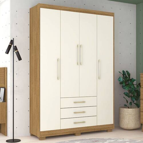 O(a) Guarda-Roupa Solteiro Oregon 4 Portas 3 Gavetas Nature/Champanhe - Pnr Móveis é produzido em MDP na escala de brilho Impressão UV, e possui um grau de dificuldade de montagem: Médio.