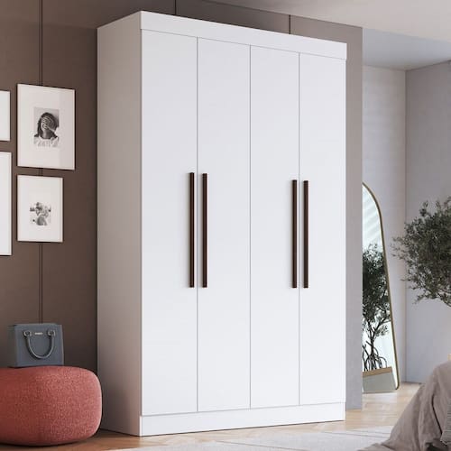 O(a) Guarda-Roupa Solteiro Orlando 4 Portas 2 Gavetas Branco - Doripel é produzido em MDF na escala de brilho Semi-Brilho, e possui um grau de dificuldade de montagem: Médio.